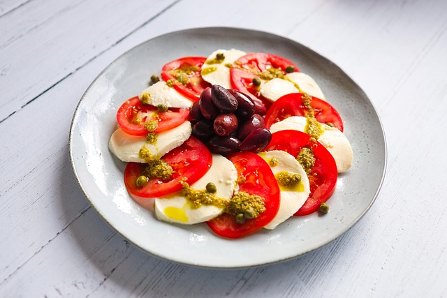 ✅ 재료: 토마토 2개, 모짜렐라 치즈 1개, 바질 잎, 올리브오일, 발사믹 소스
